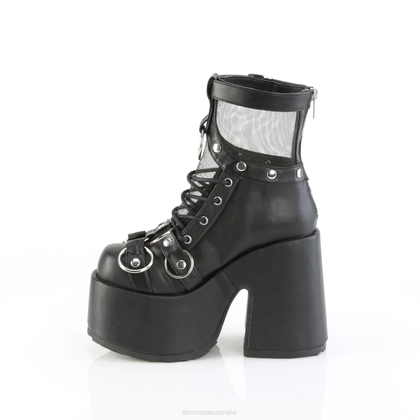 5inch (127mm) Chunky Heel, 3inch (75mm) Platform Lace-Up Front Ankle Boot Featuring Top Mesh Panel W/ Buckle Strap, O-Rings & Flat Stud Details, Back Metal Zip Closure