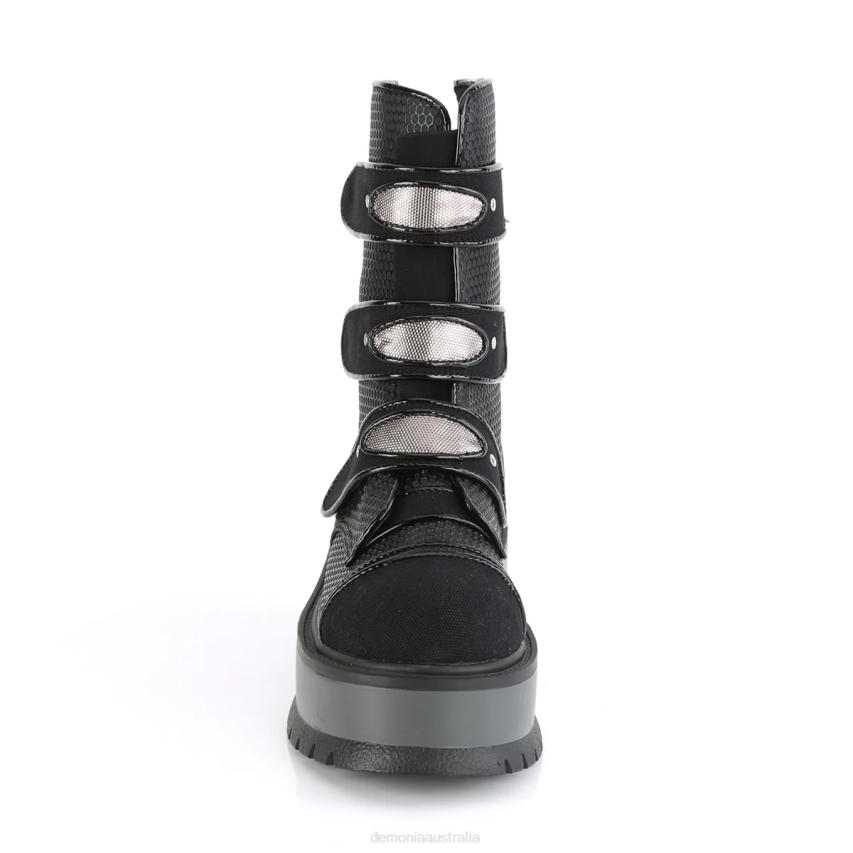 2inch (51mm) Platform Lace-Up Front Mid-Calf Boot Featuring 3 Touch Fast Straps W/ Stud & Metallic Oval Details, Back Metal Zip Closure