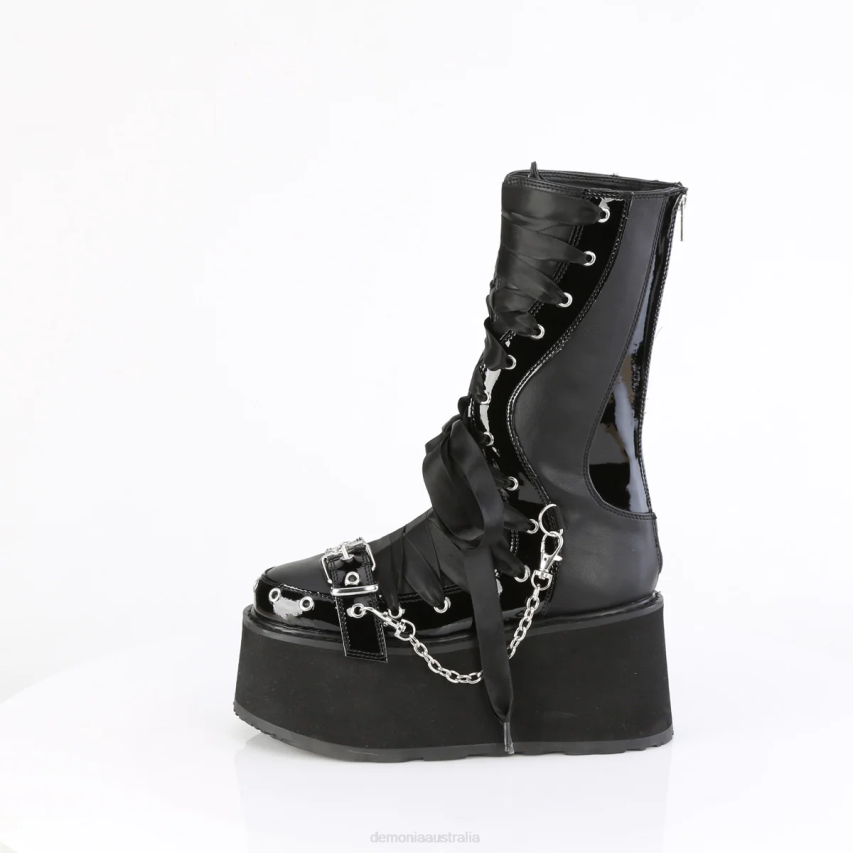 Black Vegan Leather-Patent Demonia Damned-120 R6NZ68