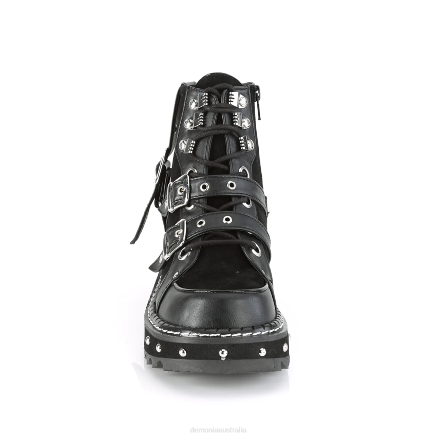 1 1/4inch (32mm) Metal Studded Platform Lace-Up Ankle Boot Featuring Buckle Straps Across The Front And Outside Of The Boot, Side Zip Closure