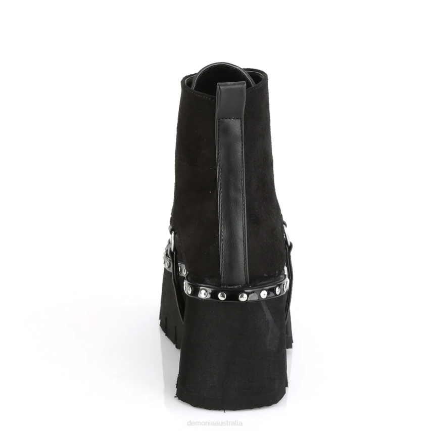 Elevate Your Style With The Ashes-100, A Vegan Suede Ankle Boot That Effortlessly Marries Edgy Aesthetics With Comfort. The Chunky 3 1/2inch Heel And Cut-out Platform Carve Out A Striking Silhouette, While The Metal Front Zip Closure Adds An Industrial-chic Touch. Silver Stud Embellishments Cascade Across The Upper And Platform, Punctuated By D-rings And A Bold Harness Strap. These Black Beauties Are Your Ticket To A Look That's Equal Parts Rebel And Luxe.