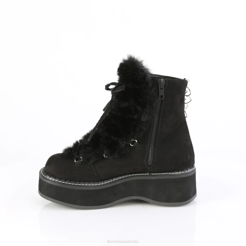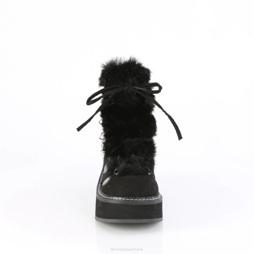 2inch (51mm) Platform D-Ring Lace-Up Front Ankle Boot Featuring Fur Covered Tongue , Contrast Heart Appliques & Hanging Heart Chain Details, Inside Metal Zip Closure