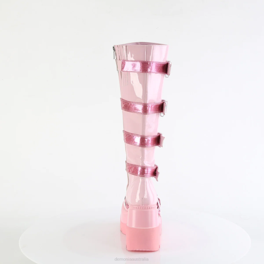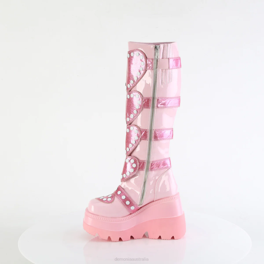 4 1/2inch (114mm) Wedge Platform Platform Knee High Boot Featuring Buckled Heart Shield Center W/ Round Studded Details, Metal Inner Side Zipper