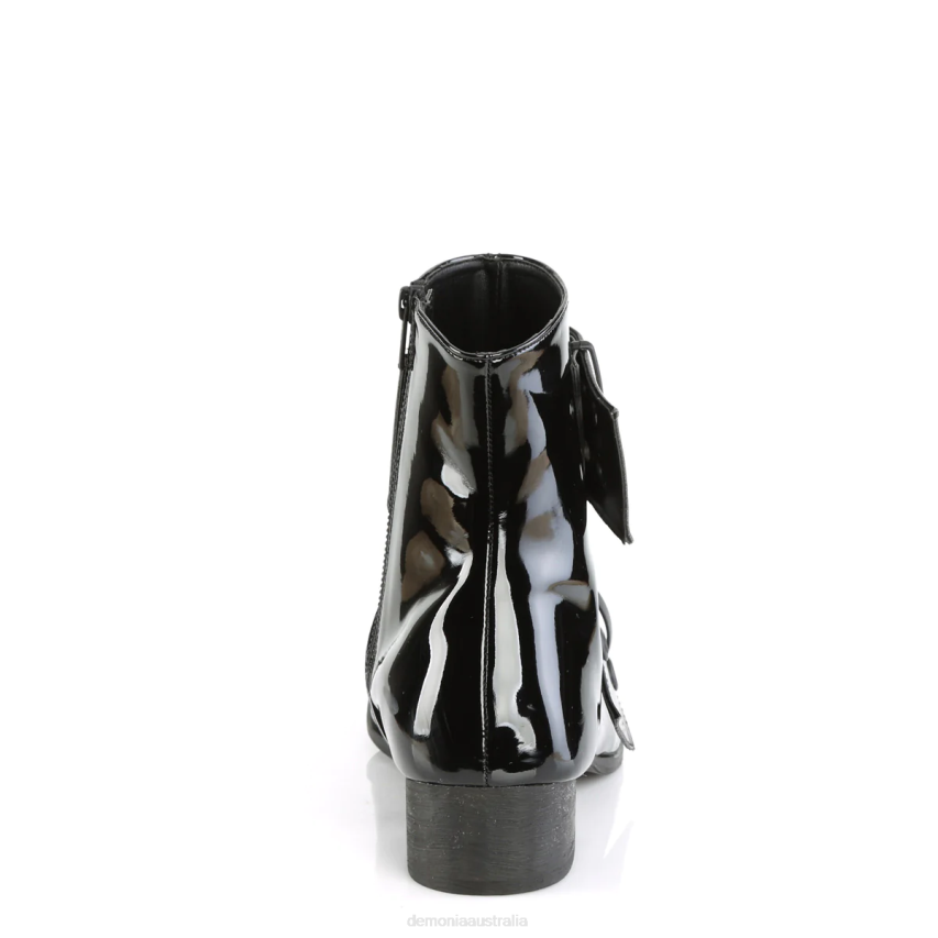 1 1/2inch (38mm) Block Heel Pointed Toe Winklepicker Style Ankle Boot Featuring Double Grommet Buckle Straps, Inside Zip Closure