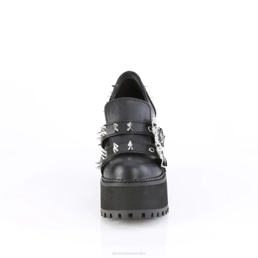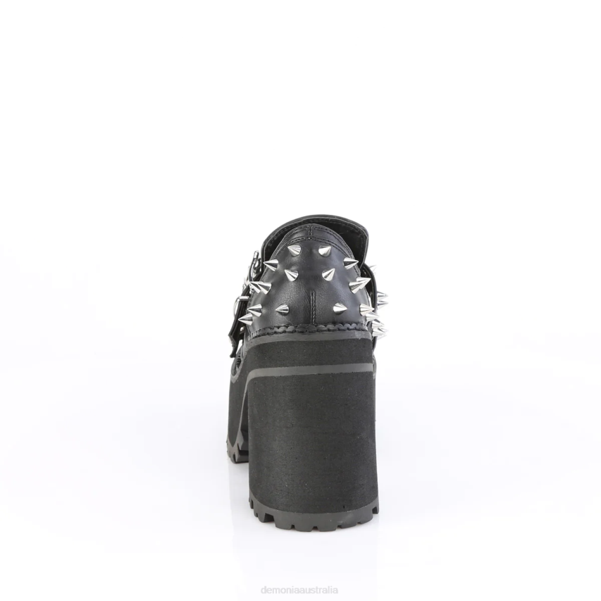 4 3/4inch (121mm) Block Heel, 2 1/4inch (57mm) Cleated Platform Loafer Featuring Double Skull Buckle Straps & Cone Spike Stud Details On Straps & Heel