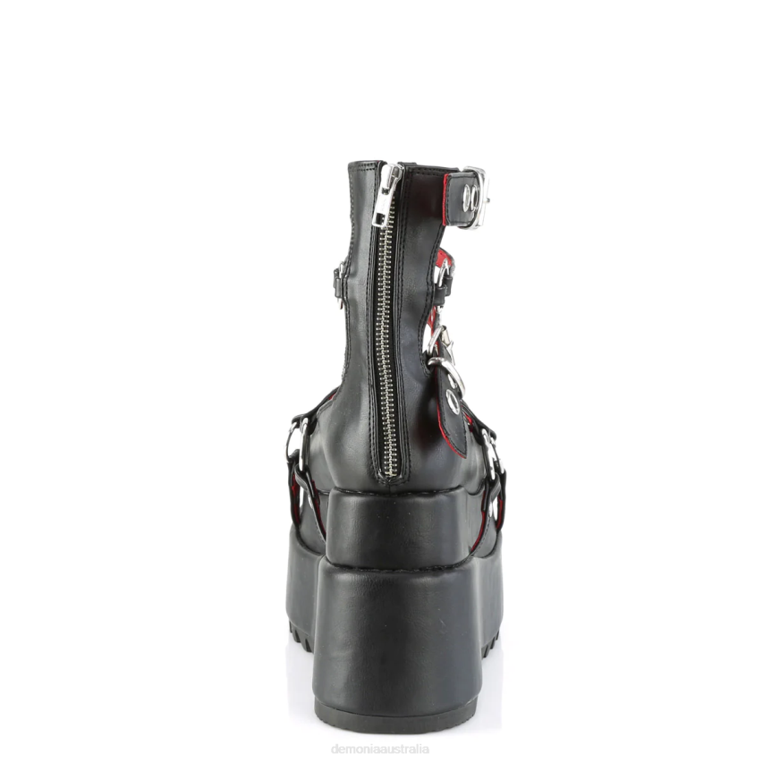 4 1/2inch (114mm) Tiered Platform Cage Bootie Featuring Buckle Straps, O-Rings & Studding Details, Metal Back Zip Closure