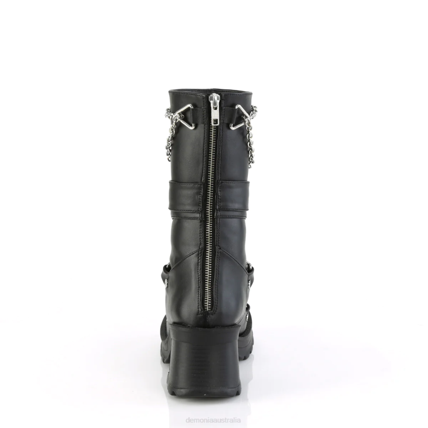 2 3/4inch (70mm) Chunky Heel, 1inch (25mm) Platform Mid-Calf Boot, Featuring Pyramid Ring, Screw Studs, Hanging Skull O-Ring And Metal Chain Detailing On The Vamp, Back Metal Zip Closure