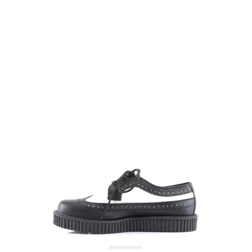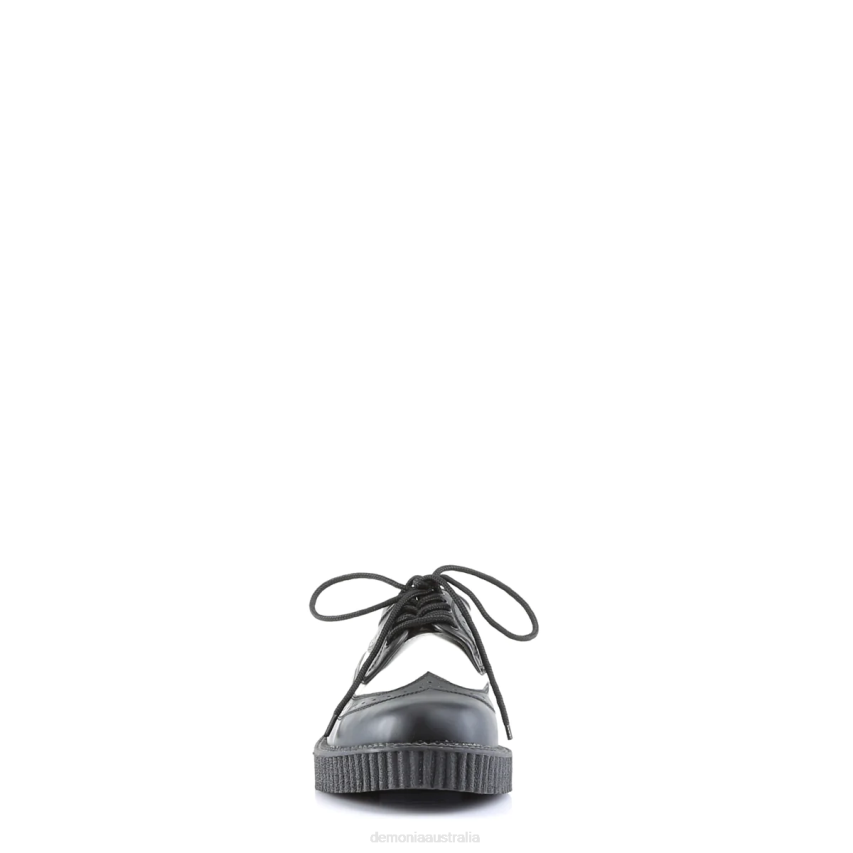 1inch Platform Rockabilly Punk Black-White Oxford Leather Creeper