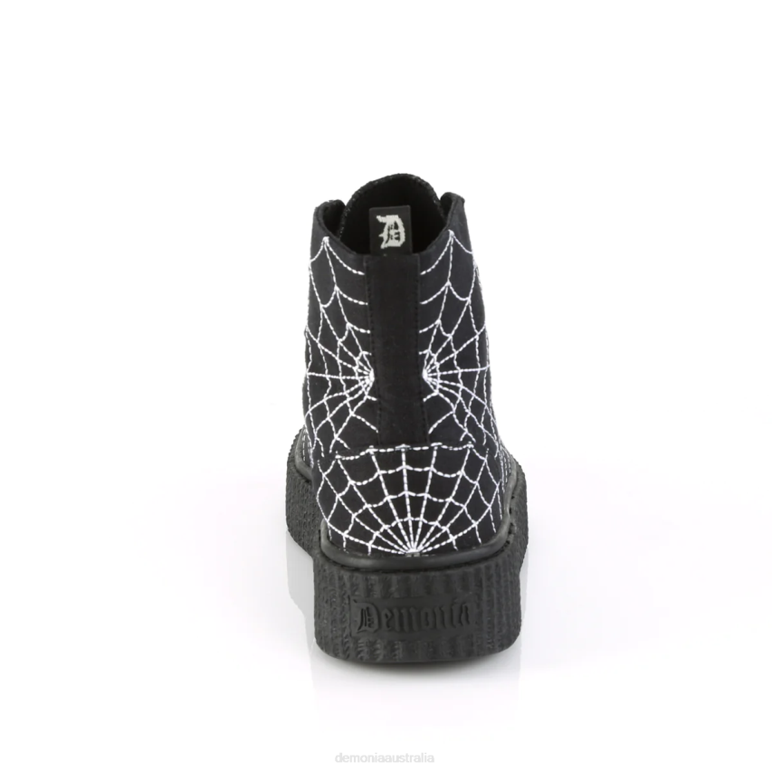1 1/2inch (38mm) Platform Rubber Sole High Top Round Toe Lace-Up Front Creeper Sneaker Featuring Embroidered Spider Web Detail