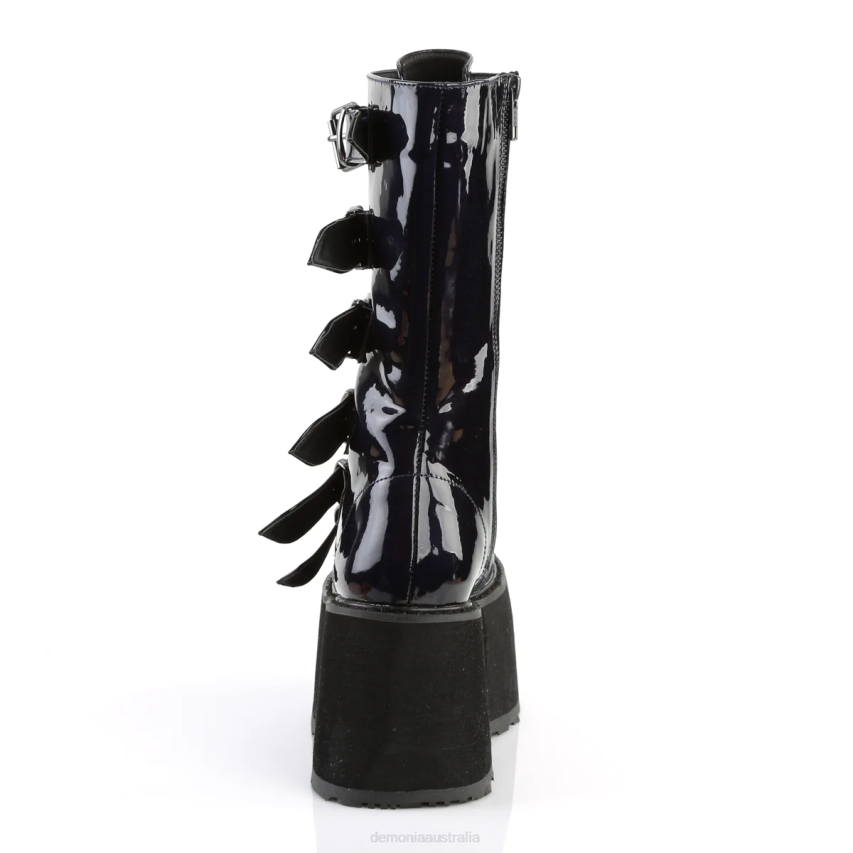 Elevate Your Style With The Damned-225 Mid-calf Boots. With A 3 1/2inch Platform And A Lace-up Front, These Boots Are The Perfect Combination Of Edgy And Chic. The Six Cone-studded Buckle Straps Add A Touch Of Rebelliousness, While The Inside Metal Zip Closure Ensures Easy On And Off. Crafted From Black Hologram Vegan Leather, These Boots Not Only Look Stunning But Also Make A Statement About Your Ethical Values. Embrace Your Individuality And Rock The Damned-225 Boots With Confidence.