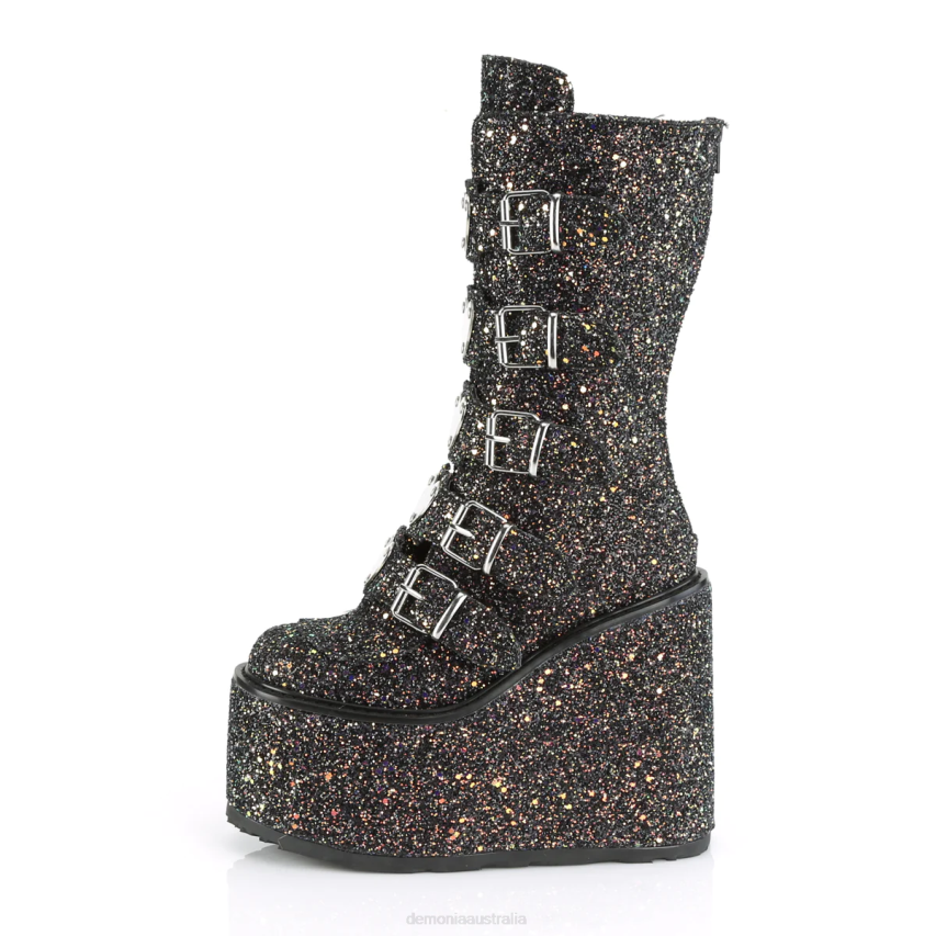 5 1/2inch (140mm) Platform Mid-Calf Boot Featuring 5 Buckle Straps W/ Heart Shaped Metal Plates At Center, Back Metal Zip Closure