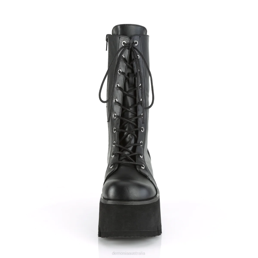 Ashes-105, A Bold And Edgy Mid-calf Boot That Will Take Your Footwear Collection To The Next Level. Available In Black Vegan Leather, These Boots Feature A Chunky 3 1/2inch Heel And 2 1/4inch Platform That Will Add Some Serious Attitude To Any Outfit. The Lace-up Design And Side Zip Closure Make For A Secure And Comfortable Fit. Versatile Enough To Wear For Any Occasion, These Boots Are Perfect For Those Who Want To Make A Statement Without Sacrificing Style Or Comfort. Whether You're Dressing Up For A Festival Or Taking On The City Streets, The Ashes-105 Is Your New Favorite Shoe.