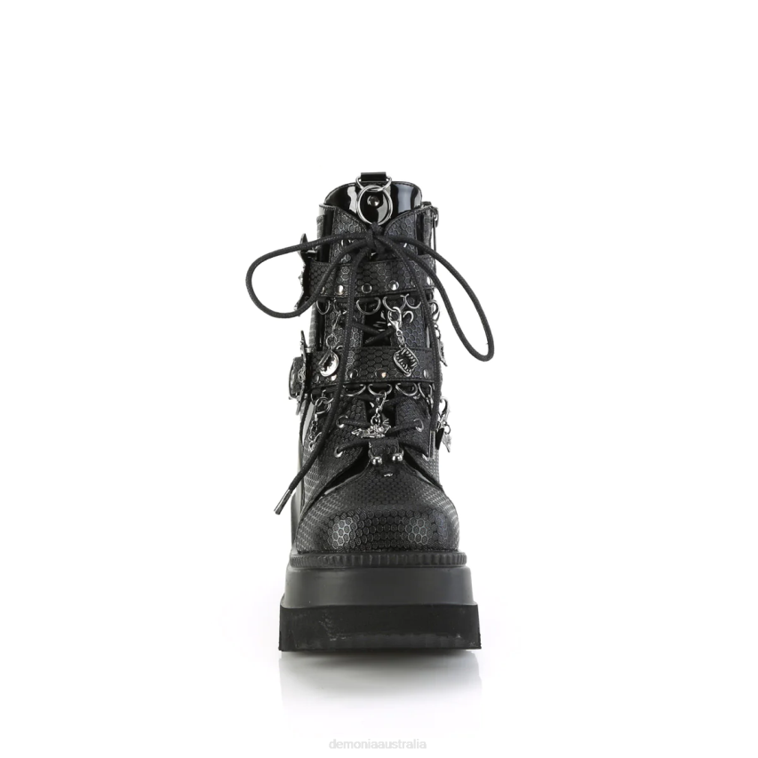 Be The Ultimate Badass In Our Striking Shaker-66 Ankle Boots. The 4 1/2inch Wedge Platform And Bat Charms Command Attention, While The Removable Fang And Bat Charm Details Add A Unique, Personalized Touch That Is Both Versatile And Expressive. These Boots Feature Inner Side Zip Closure For Easy On And Off, Making Them Perfect For Any Occasion. Designed With Contrasting Panel Designs On Vamp, The Shaker-66 Combines Function And Style, Making Them A Go-to Choice For Anyone Looking To Add A Touch Of Edge To Their Wardrobe.