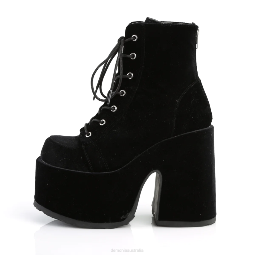 Looking For The Perfect Blend Of Style And Comfort? Look No Further Than The Stunning Camel-203 Ankle Boots. Made From Black Velvet, These Sleek Boots Feature A Chunky 5inch Heel And 3inch Platform That Offer Support Without Sacrificing Style. The Lace-up Front Provides A Secure And Adjustable Fit, While The Metal Back Zip Closure Allows For Easy On And Off. Style Them With Your Favorite Alt Outfit For A Head-turning Look That's Sure To Make A Statement. Shop The Camel-203 Ankle Boots Today And Take Your Wardrobe To The Next Level.
