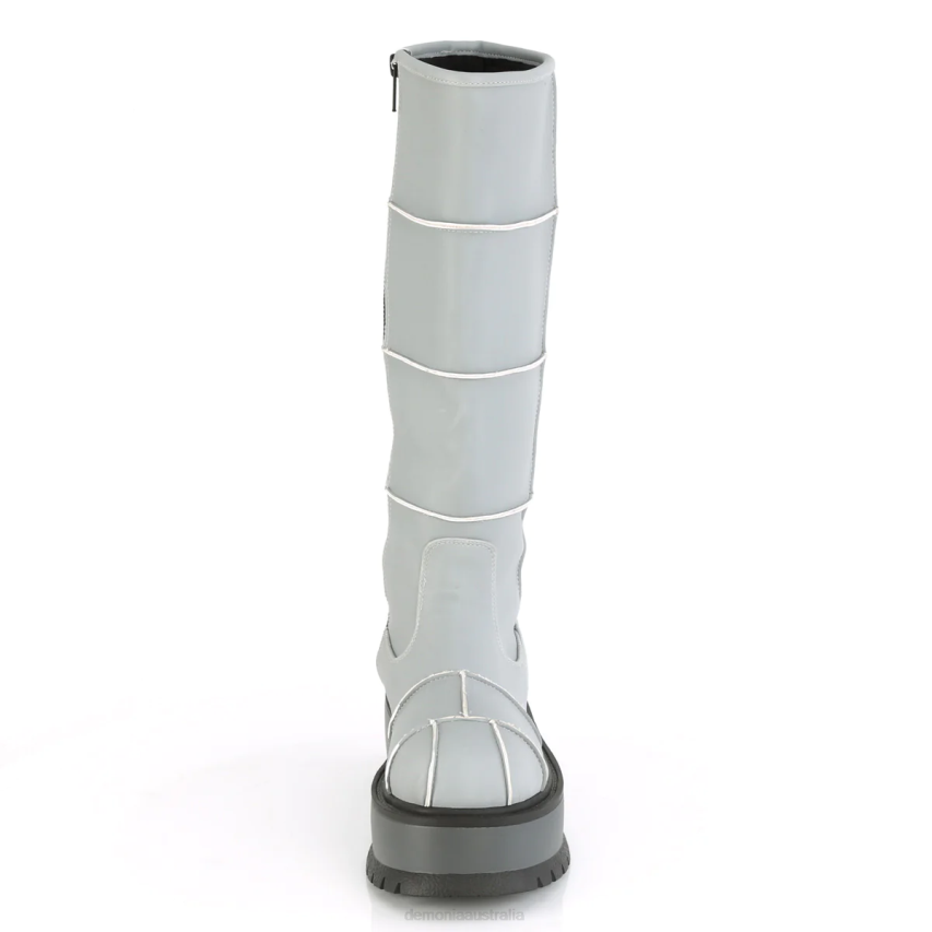 2inch (51mm) Platform Knee High Boot W/ Patching Details, Full Length Inside Metal Zip Closure