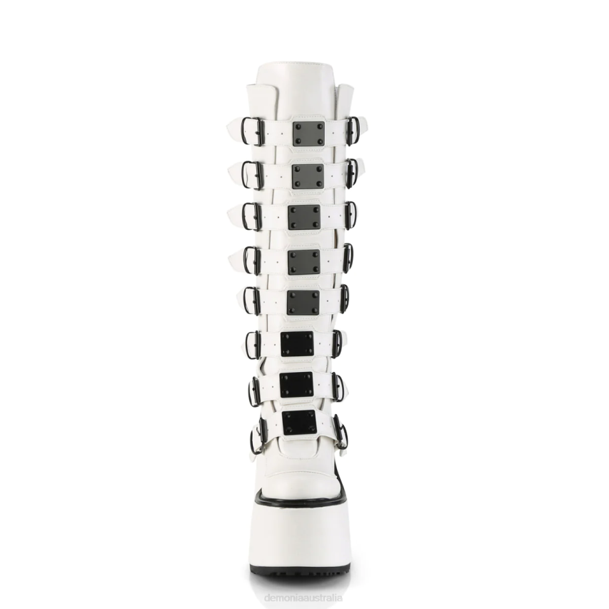 5 1/2inch (140mm) Platform Knee High Boot Featuring 8 Buckle Straps W/ Metal Plates At Center, Back Metal Zip Closure