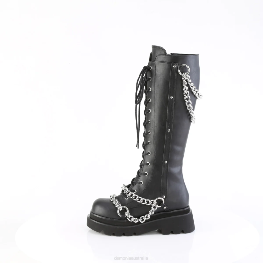 2 1/2inch Tiered Platform Lace-Up Knee Hight Boots Featuring Tiered Swooping Chains & O-ring Details On The Top And Vamp, Inside Metal Zip Closure
