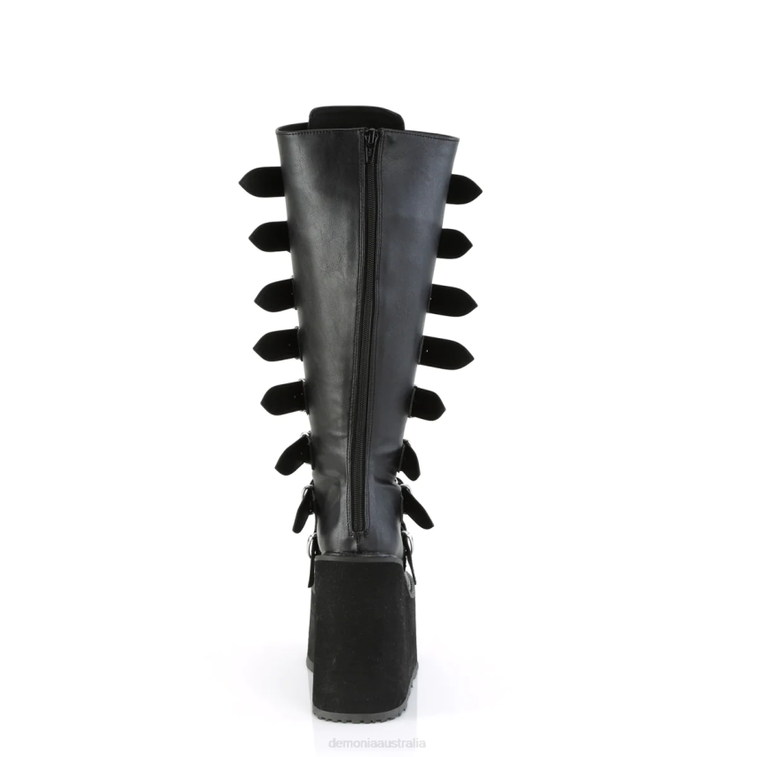 Step Into Bold New Territory With The Swing-815WC Knee-high Boot. This Daring Boot Features A 5 1/2inch Platform, Making Every Step A Statement. Eight Buckle Straps With Metal Plates Bring Just The Right Amount Of Edge To This Fashion-forward Piece. Complete With A Back Metal Zip Closure, Putting On And Taking Off The Swing-815WC Is As Easy As Can Be. Made With Black Vegan Leather, This Wide Calf Boot Is A Standout Piece For Fashion Lovers Everywhere.
