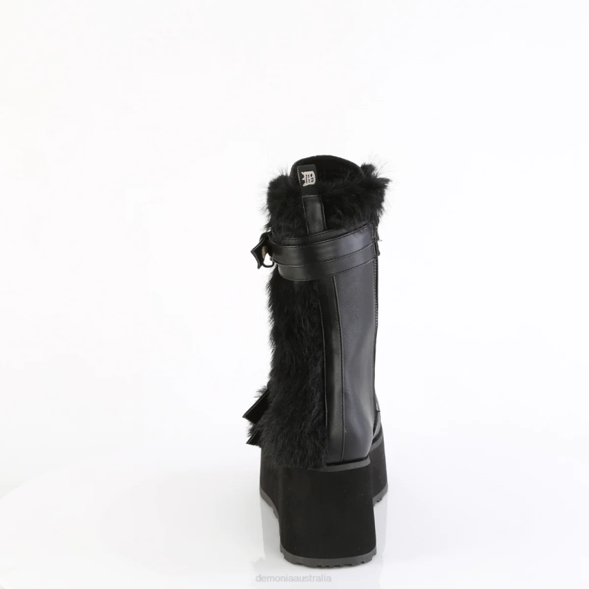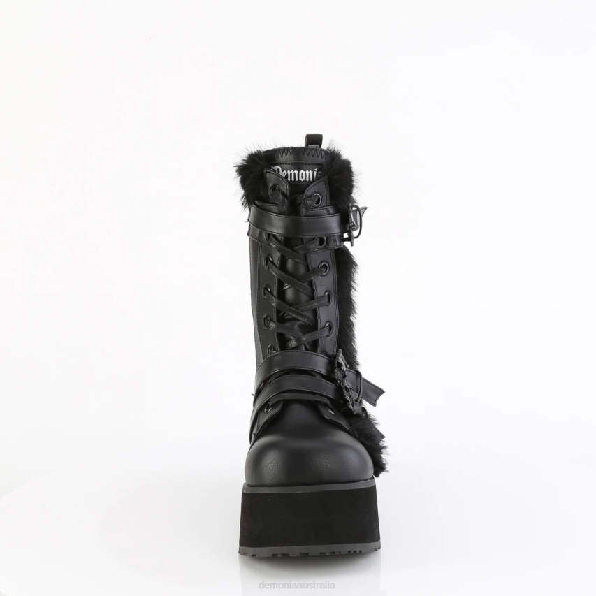Black Vegan Leather-Faux Fur Demonia Trashville-218 R6NZ352
