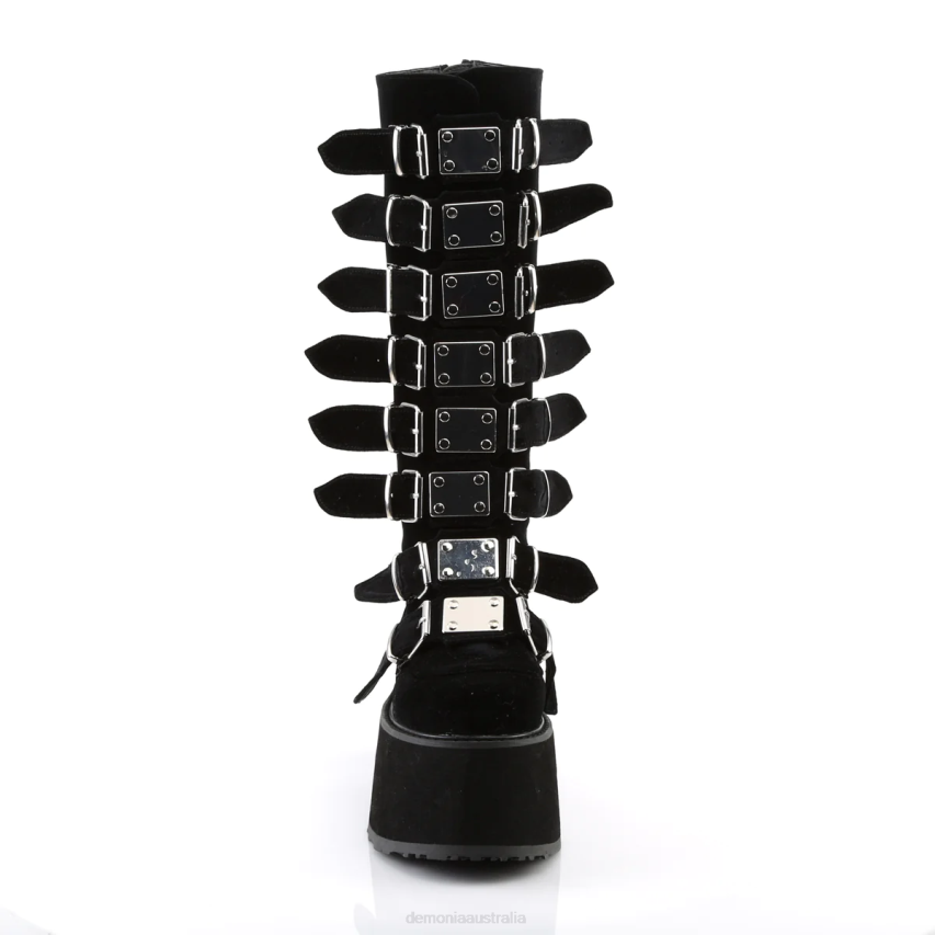 3 1/2inch (90mm) Platform Knee High Boot Featuring 8 Buckle Straps W/ Metal Plates At Center, Back Metal Zip Closure