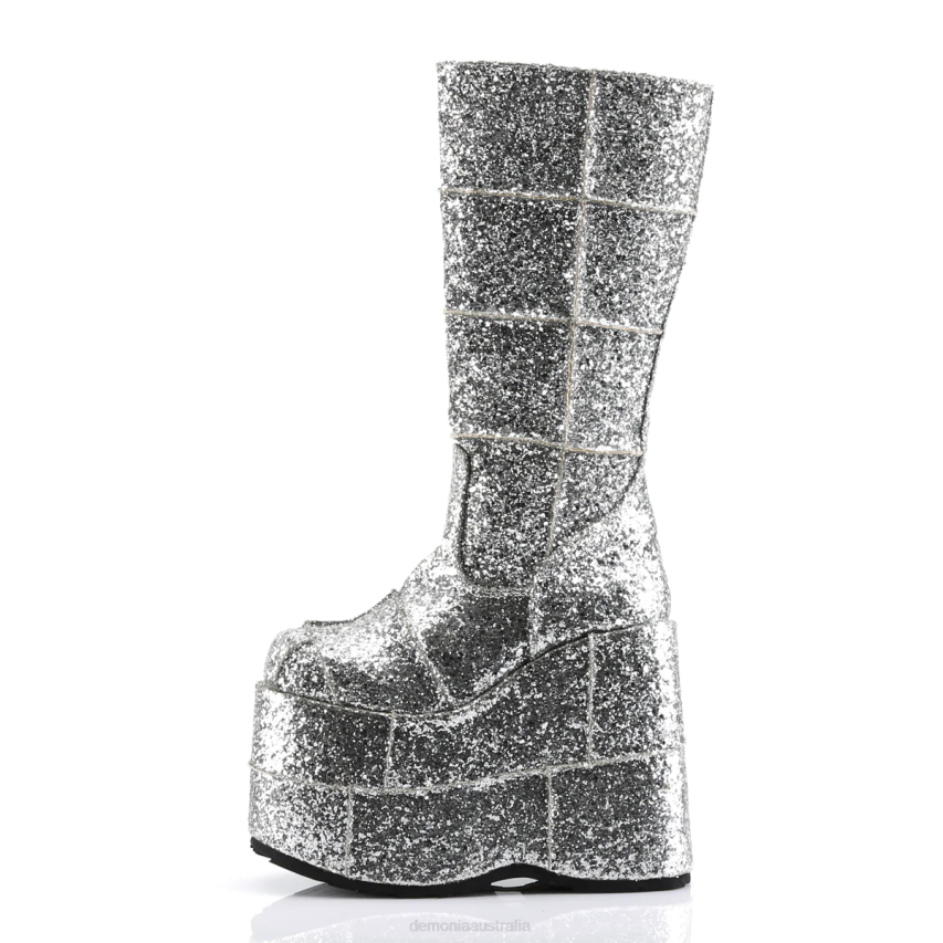 Home| Boots| Knee-high Boots| Silver Gltr Demonia Stack-301G R6NZ320