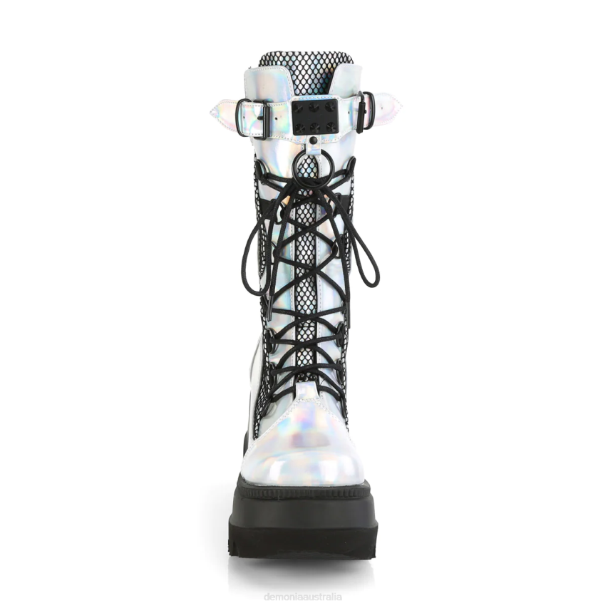 Home| Boots| Knee-high Boots| Silver Holo. Vegan Leather-Black Fishnet Demonia Shaker-70 R6NZ300
