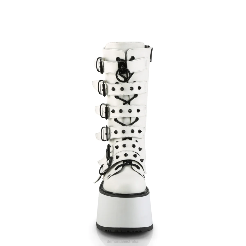 3 1/2inch (90mm) Platform Lace-Up Front Mid-Calf Boot Featuring 6 Cone-Studded Buckle Straps, Inside Metal Zip Closure