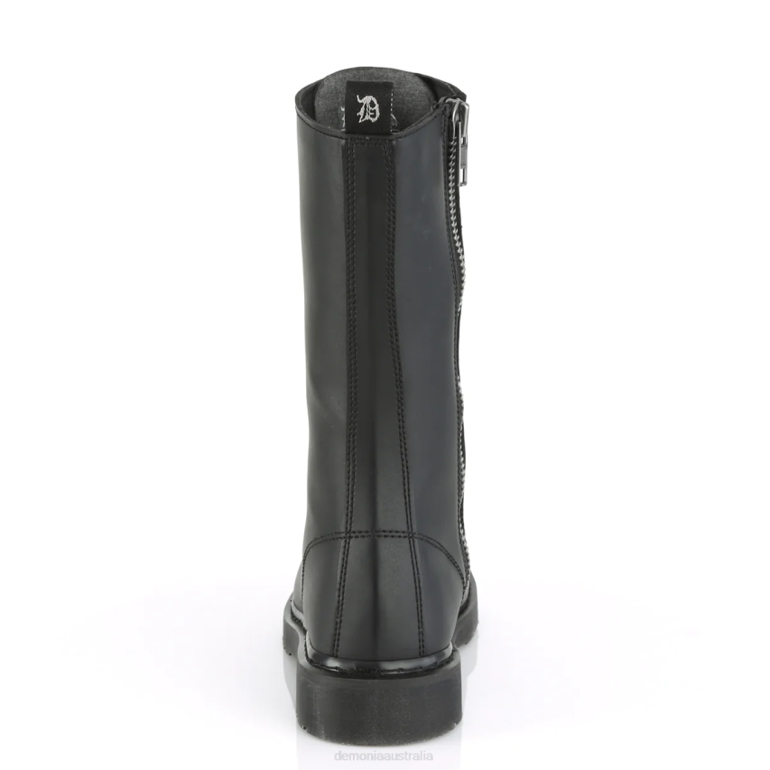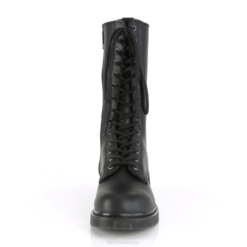 1 1/4inch (32mm) Stacked Flat Heel 14-Eyelet Lace-Up Mid Calf Unisex Vegan Boot W/ Back Pull-Tab, Inside Zip Closure