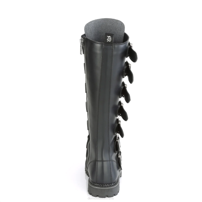 Make No Apologies With The Riot-21MP, The Pinnacle Of Punk-inspired, Cruelty-free Footwear. Sporting A Commanding Steel Toe And Enhanced With A Series Of Bold Buckles And Front Metal Plates, These Knee-high Boots Crafted From Top-tier Black Vegan Leather Are Built To Create An Impression. A Sturdy Rubber Sole Coupled With A Full Zip Closure Means Stepping Into Empowerment Has Never Been Easier. With The Riot-21MP, Bring Conviction To Your Stride.