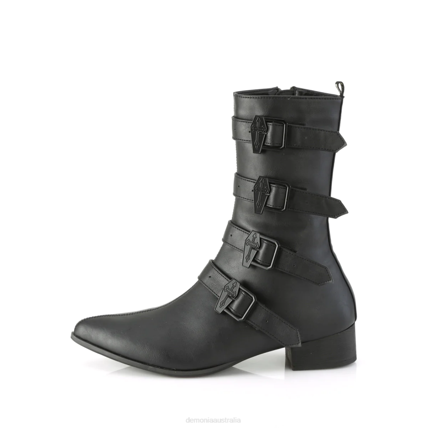1 1/2inch (38mm) Block Heel Pointed Toe Winklepicker Style Mid-Calf Boot, Featuring Multi Coffin Buckle Straps, Inside Zip Closure