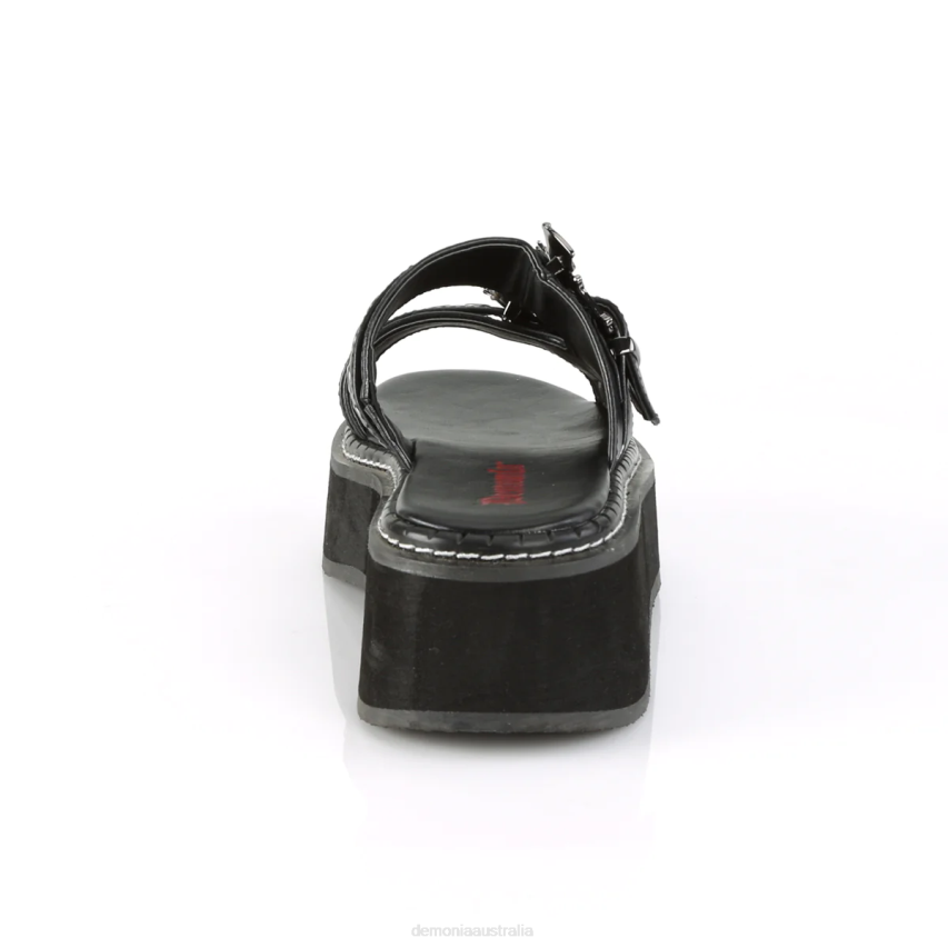 Meet Emily-100, The Perfect Choice For Any Fashion-forward Style Lover Looking For A Chic And Edgy Summer Sandal. These Black Vegan Leather Slide Sandals Boast A Bold 2inch Platform, Making Them Ideal For Adding A Little Extra Height And Attitude To Your Look. The Double Strap Design Is Adorned With Eye-catching Rivets, Adding A Touch Of Edginess To These Already Striking Sandals. The Ornamental Bat Buckles Add A Touch Of Gothic Charm To These Sleek And Sophisticated Sandals. Whether You're Headed To A Festival, Night Out With Friends, Or Just Looking For A Stylish And Comfortable Accessory For Everyday Wear, Emily-100 Is The Perfect Choice. With A Comfortable Yet Secure Fit, You Won't Want To Take These Sandals Off.