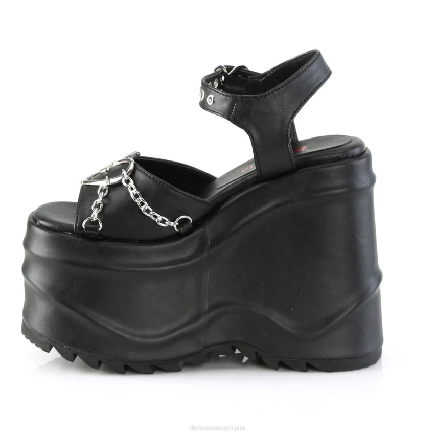 Home| Platforms| Sandals| Black Vegan Leather Demonia Wave-09 R6NZ506