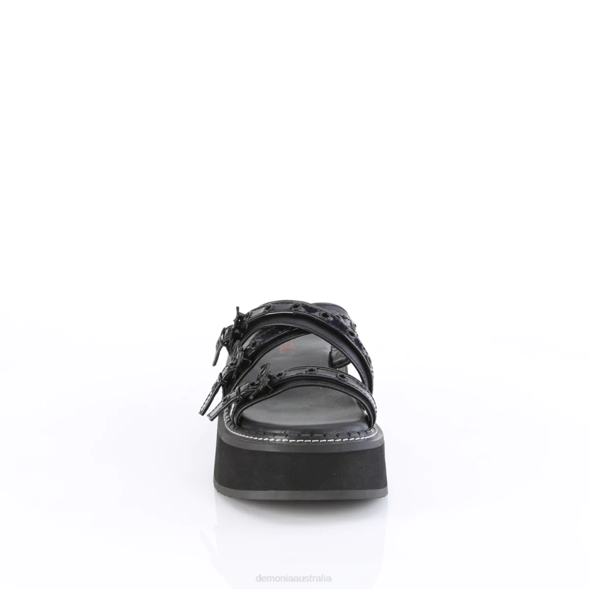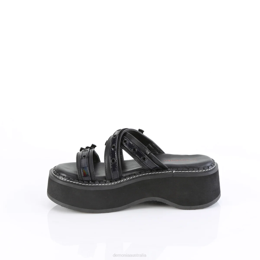 Elevate Your Style With The Emily-07 Platform Strappy Sandals. Featuring A 2inch Platform, These Sandals Are Not Only Trendy But Also Comfortable To Wear All Day And Night. The Eyeletted Criss-cross Straps Create A Unique And Alluring Look, While The Ornamental Bat Buckle Details Add A Touch Of Individuality. Crafted With Black Vegan Leather And Holo Patent Finish, These Sandals Give Off A Striking And Contemporary Vibe. Perfect For Casual Outings, Parties, Or Even A Night On The Town, The Emily-07 Sandals Are A Must-have Addition To Any Alternative Fashion Enthusiast's Collection.