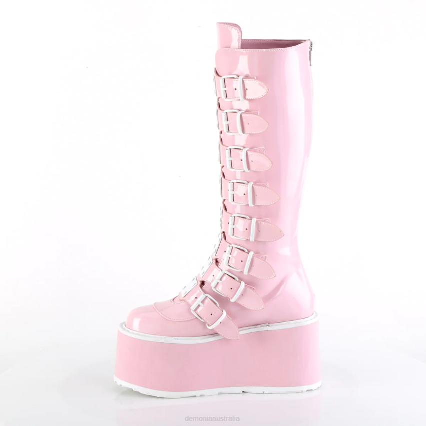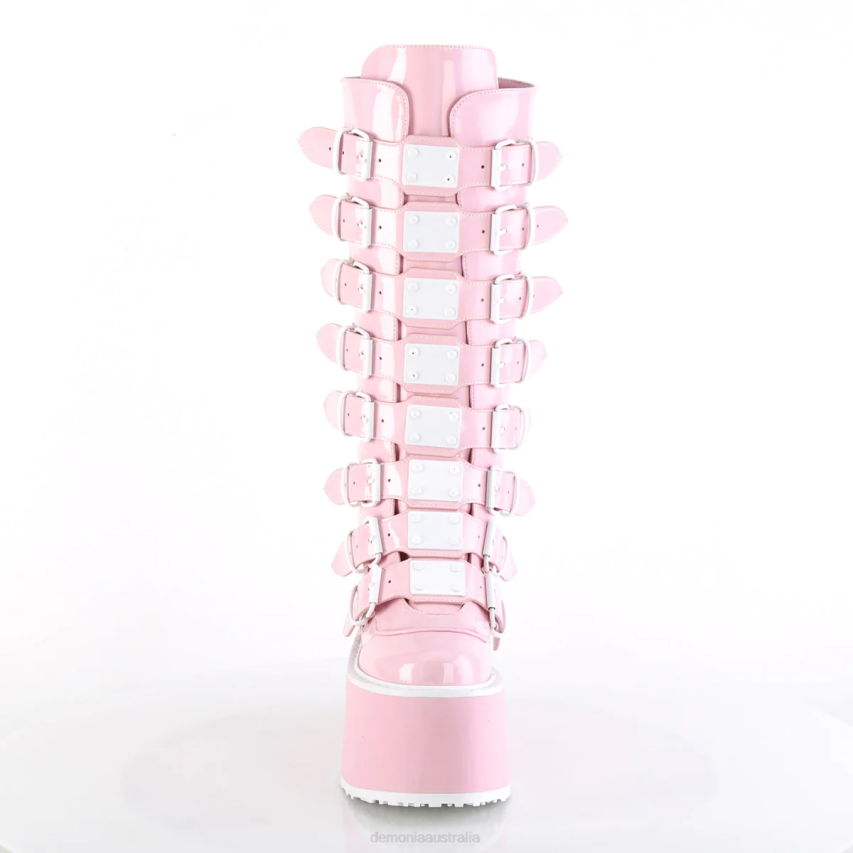 3 1/2inch (90mm) Platform Knee High Boot Featuring 8 Buckle Straps W/ Metal Plates At Center, Back Metal Zip Closure
