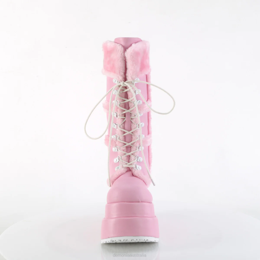 4 1/2inch (114mm) Tiered Platform Lace-Up Mid-Calf Boot Featuring Faux Fur Trim And Cuff Detail, Full Inner Side Zip Closure