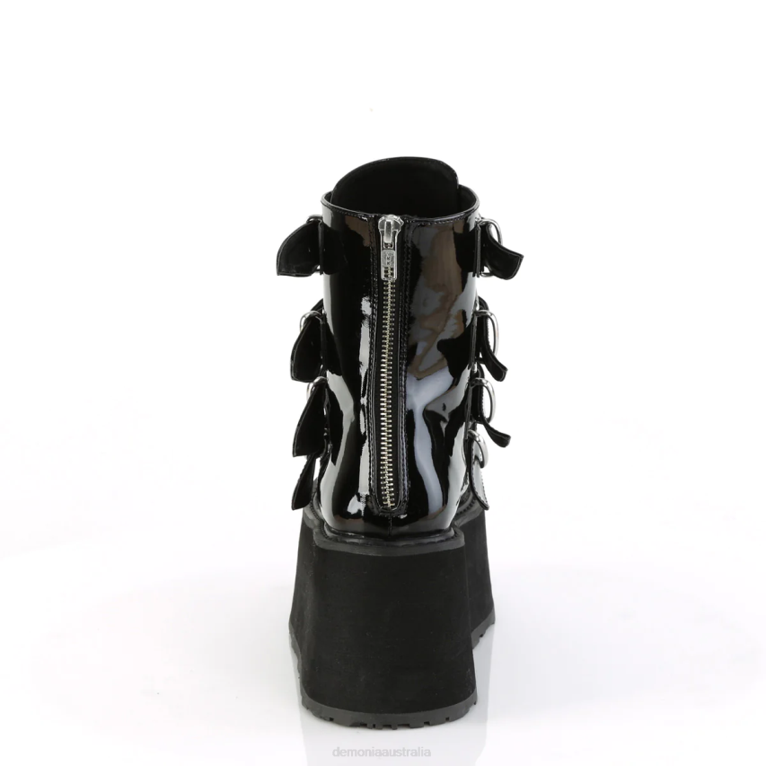 3 1/2inch (90mm) Platform Ankle Boot Featuring Quadruple Buckle Straps W/ Metal Plates At Center, Back Metal Zip Closure