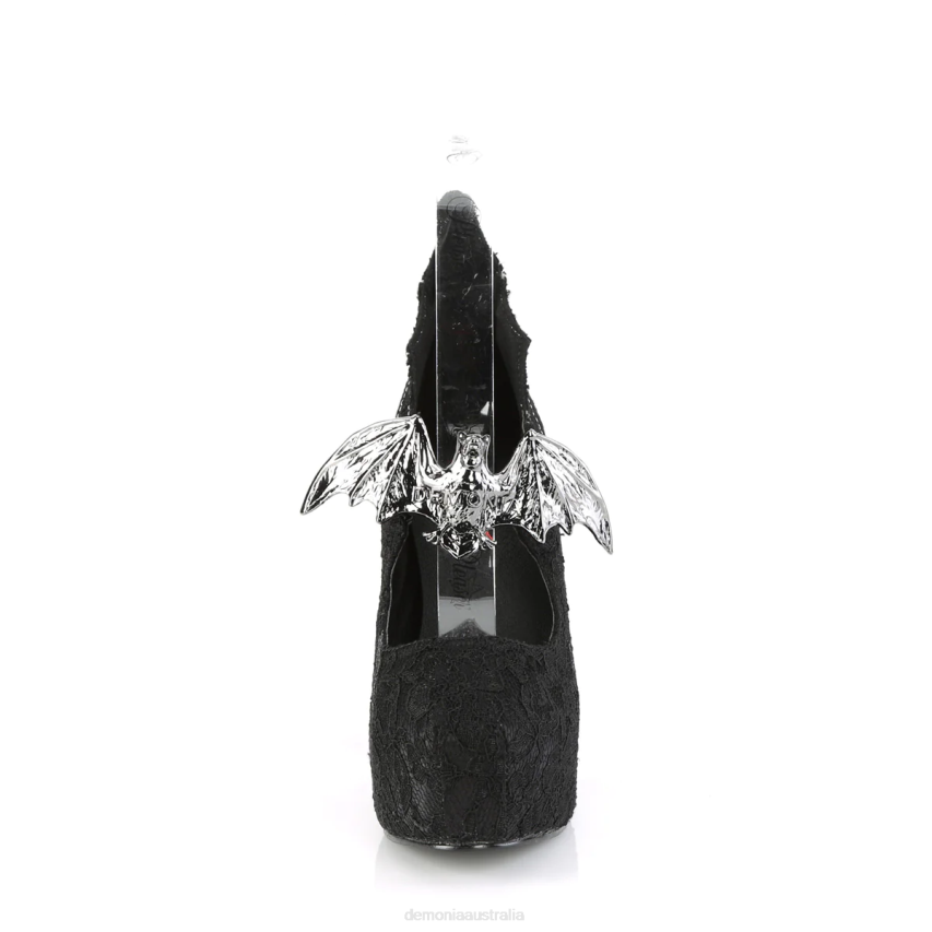 5inch (127mm) Heel, 1 1/2inch (38mm) Concealed Platform Slip-On Mary Jane Pump Featuring Elastic Strap W/ Large Metal Bat & Cone Spike Studded Bat Wing Detail On The Heel Cap