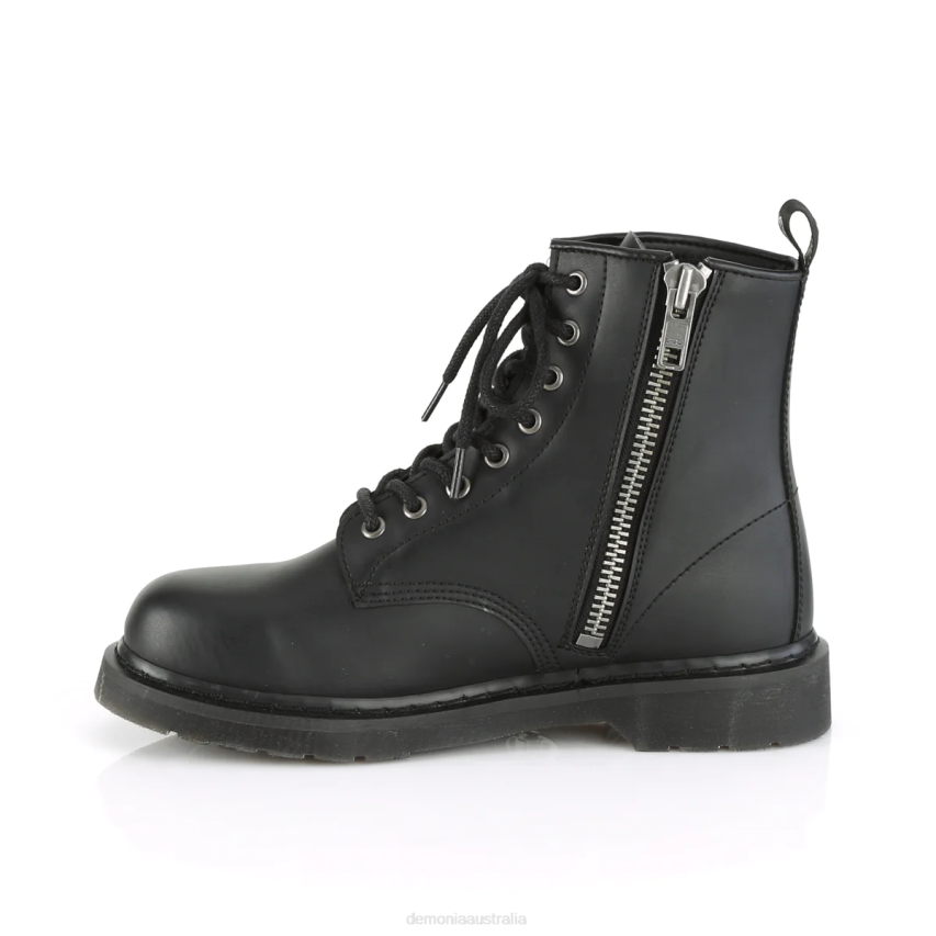 Elevate Your Edgy Ensemble With The Bolt-100 Unisex Vegan Boot. Boasting An Understated 1 1/4inch Stacked Flat Heel And Crafted With Premium Black Vegan Leather, These Lace-up, Mid-calf Boots Are As Ethical As They Are Stylish. The Design Features A Classic Eight-eyelet Finish, Complemented By A Handy Back Pull-tab And A Convenient Inside Zip Closure For Effortless Wear. The Bolt-100 Is The Perfect Fusion Of Punk-inspired Aesthetics And Modern-day Eco-conscious Fashion.