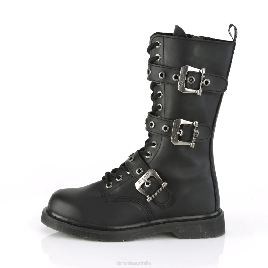 1 1/4inch (32mm) Heel 14 Eyelet Unisex Mid-Calf Combat Boot Featuring Triple Buckle Straps, Inside Zip Closure