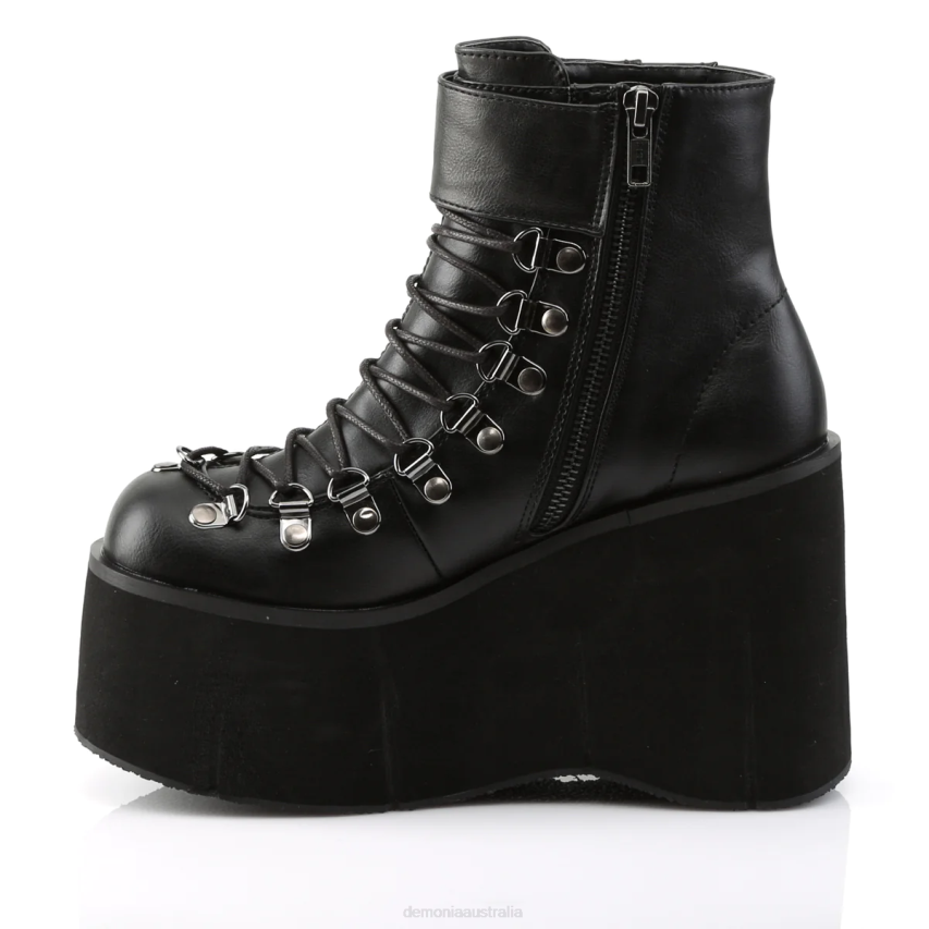 Step Into The Spotlight With The Vegan-friendly Kera-21 Ankle Boot. Featuring A 4 1/2inch Platform, These Boots Create An Illusion With A Faux Lace-up Front While Offering The Convenience Of A Side Zipper. The Adjustable Ankle Cuff Ensures You Can Tailor The Fit To Your Comfort And Style. The Black Vegan Leather Exudes Sophistication, Making These Boots A Perfect Match For Any Goth-inspired Or Edgy Ensemble.