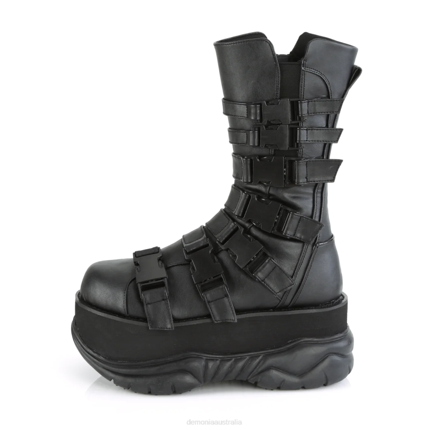 Dominate The Streets In The Neptune-210, Where Fashion Meets Rebellion. This Mid-calf Boot Flaunts A Powerful 3inch Platform, Alongside An Array Of Adjustable Straps Crowned With Side-release Plastic Buckles. The Boot's Interior Zipper Closure Melts Away The Hassle Of Entry. With Its Striking Black Vegan Leather Construction, Neptune-210 Ensures You Leave A Bold, Ethical Footprint Wherever You Go.