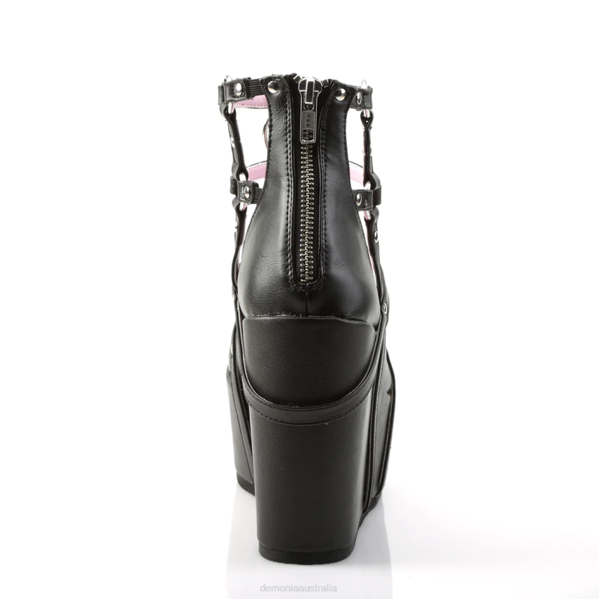 Step Into The Night With Confidence In The Poison-25-1, The Ultimate Wedge Platform Cage Bootie For Those Who Dare To Stand Out. Adorned With Dynamic Studding And Versatile O-rings, Topped Off With An Enchanting Pentagram Charm, These Boots Are A Statement Of Empowerment. Constructed From Sleek Black Vegan Leather, They Are Conscientious As They Are Chic. Perfect For The Modern Maven Ready To Conquer Any Scene With Style And Soul.