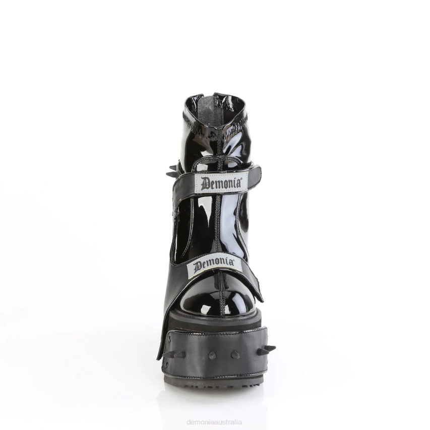 5 1/2inch (14cm) Wedge Platform Stretch Ankle Boot Featuring 4 Interchangeable Hook-N-Loop Front Platform Panels & Harness Panels W/ Reflective Logo & Rubber Spike Studs Details , Back Metal Zip Closure