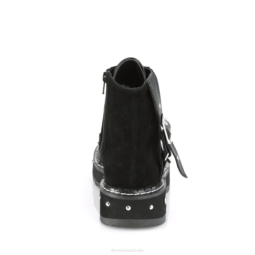 1 1/4inch (32mm) Metal Studded Platform Lace-Up Ankle Boot Featuring Buckle Straps Across The Front And Outside Of The Boot, Side Zip Closure