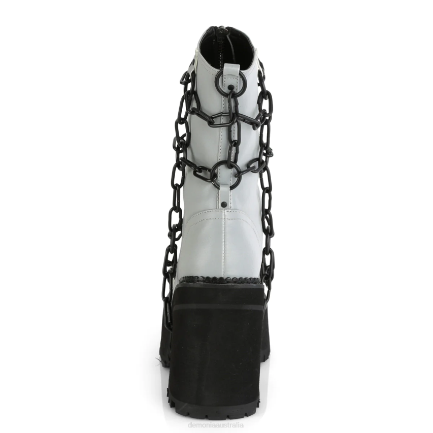 4 3/4inch (121mm) Block Heel, 2 1/4inch (57mm) Cleated Platform Ankle Boot Featuring Metal Cage Chain Detailing On The Vamp, Full Front Metal Zip Closure