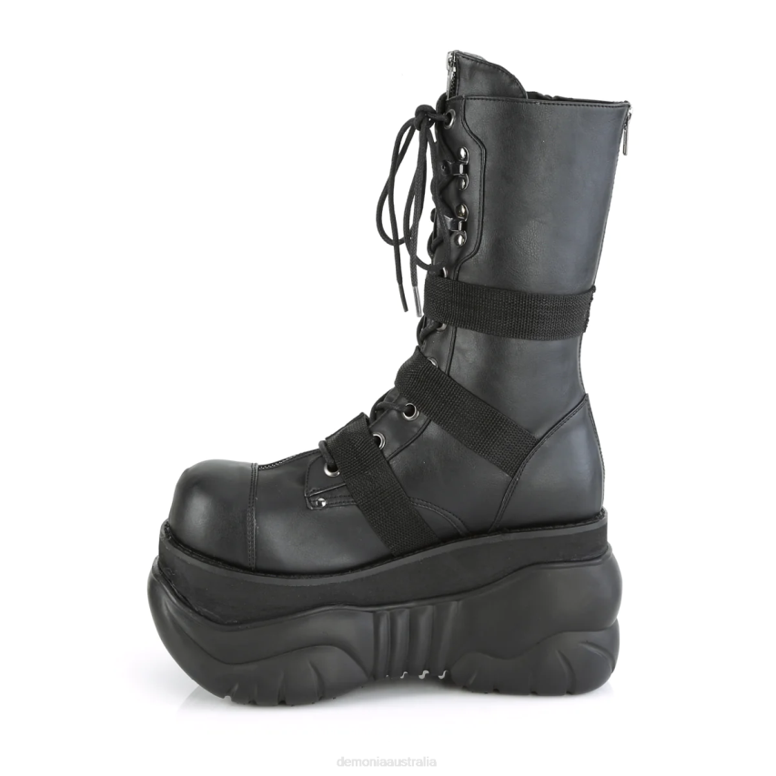 Embrace The Rebel Within With The Boxer-230 Mid-calf Boot, Featuring An Audacious 4inch Platform For Towering Style. Crafted From Premium Black Vegan Leather, These Boots Boast Three Nylon Buckle Straps And Ornamental Zipper Accents On The Tongue And Outer Shaft For Extra Edge. With A Metal Back Zip Closure For Effortless Wear, These Lace-ups Demand Attention Wherever You Go. Perfect For The Non-conformist Who Loves Making A Fashion Statement.