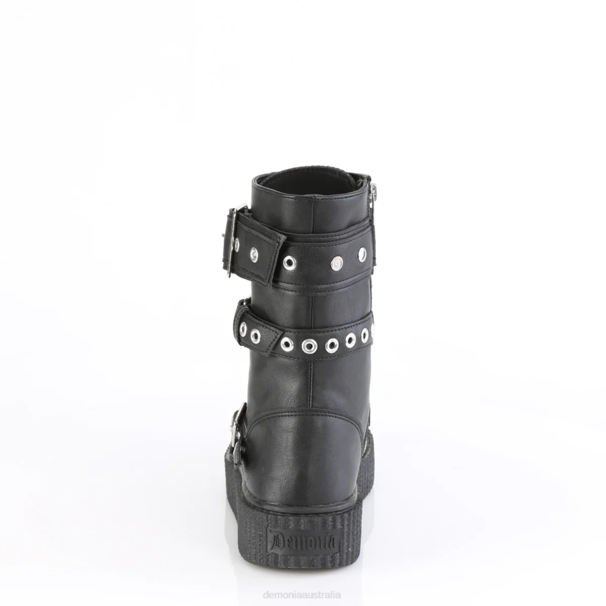 1 1/2inch (38mm) Platform Rubber Sole Round Toe Lace-Up Front Mid-Calf Creeper Sneaker Boot Featuring 4 Eyeleted Buckle Straps And Hanging O-ring Center Top Strap, Full Inner Side Metal Zip Closure Clos