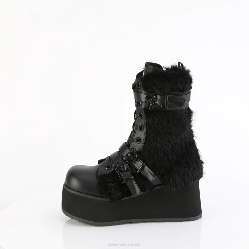 3 1/4inch (83mm) Platform Lace-Up Mid-Calf Boot Featuring 3 Skull Buckle Straps & Contrasting Ourside Fur Panel, Metal Inner Side Zipper