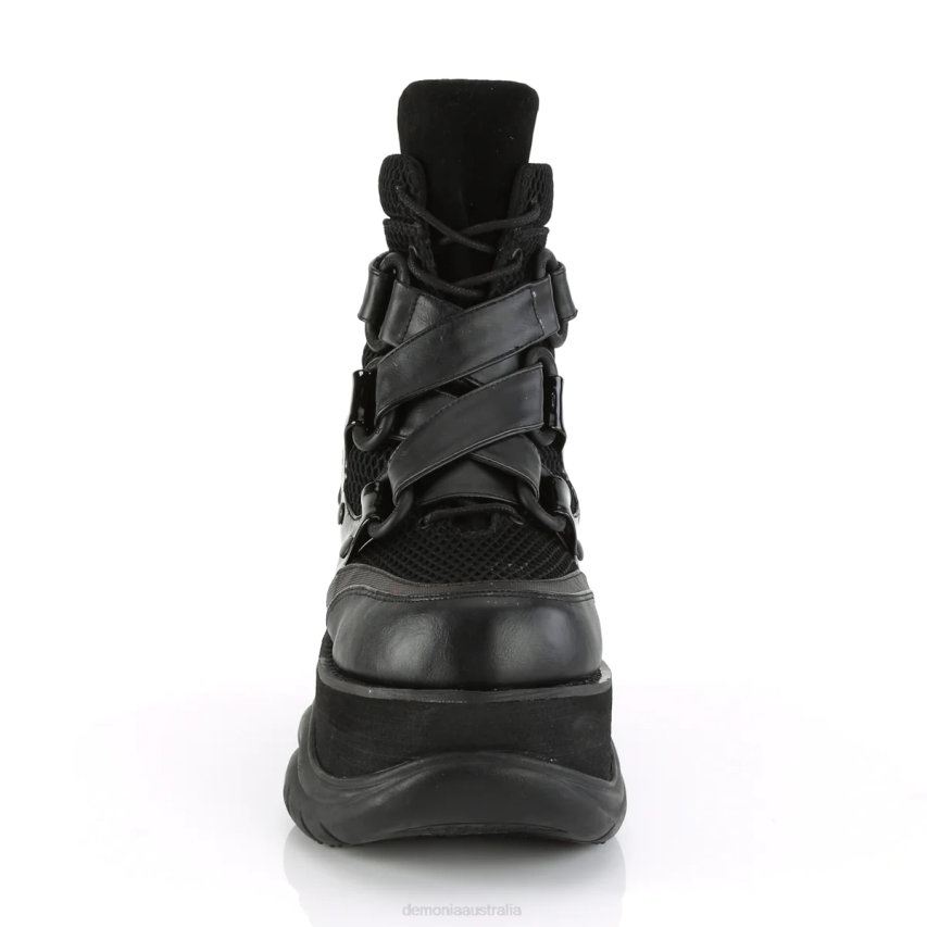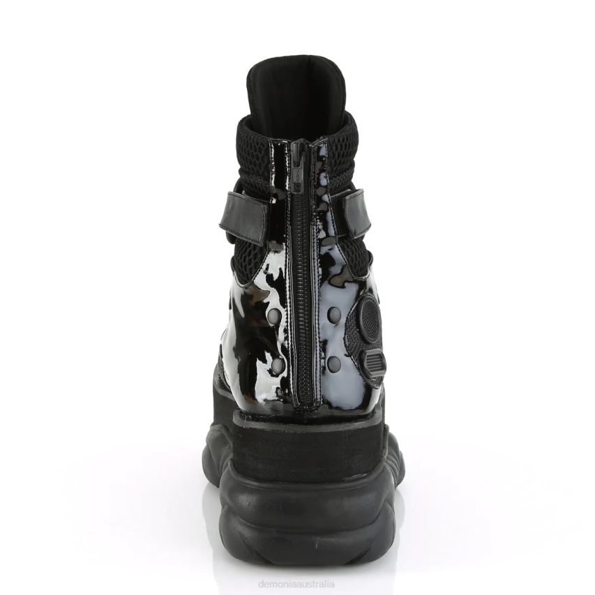 Make A Striking Statement With The Neptune-126 Ankle Boots, Where Urban-chic Meets Rebel Flair. This Boot Boasts A 3inch Platform With A Lace-up Design And Eye-catching Criss-cross Straps Secured By A Hook N' Loop System. Intriguing Ventilator Details Offer An Unexpected Twist, Ensuring You Stay Cool In More Ways Than One. The Combination Of Black Vegan Leather, Breathable Fishnet, And Sleek Patent Gives A Nod To High-fashion With A Conscious Edge. Finished With A Convenient Back Zip Closure, These Boots Are Crafted For The Bold At Heart.