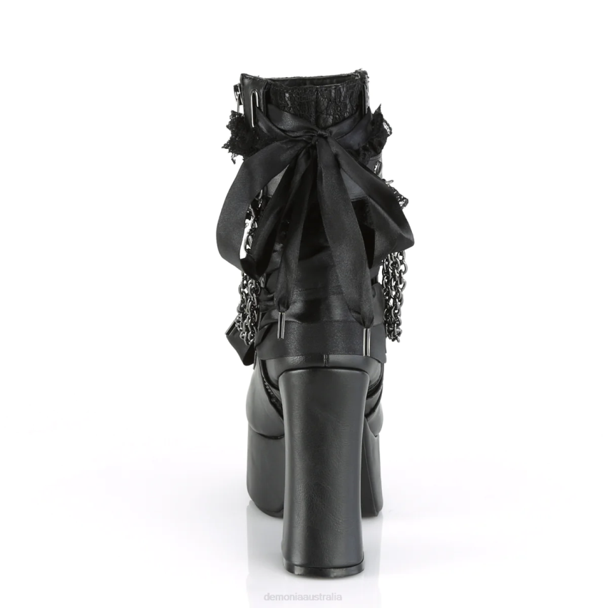 Step Into The Spotlight With Charade-110, The Ultimate Ankle Boot That Ticks All The Boxes. Designed With A 4 1/2inch Block Heel And A 2inch Platform, These Boots Offer Stability And Height Without Compromising Comfort. The Front And Back Satin Ribbon Lace-up Details Exude Elegance, While The Ruffled Ankle Strap With A Hanging Chain Detail Adds A Touch Of Punk-inspired Flair. Made With A Black Vegan Leather-lace Overlay, These Boots Are Both Trendy And Ethically Conscious. With An Inside Zip Closure, Slipping Into Charade-110 Is A Breeze. Elevate Your Style Game With These Show-stopping Boots That Effortlessly Blend Sophistication And Edginess.